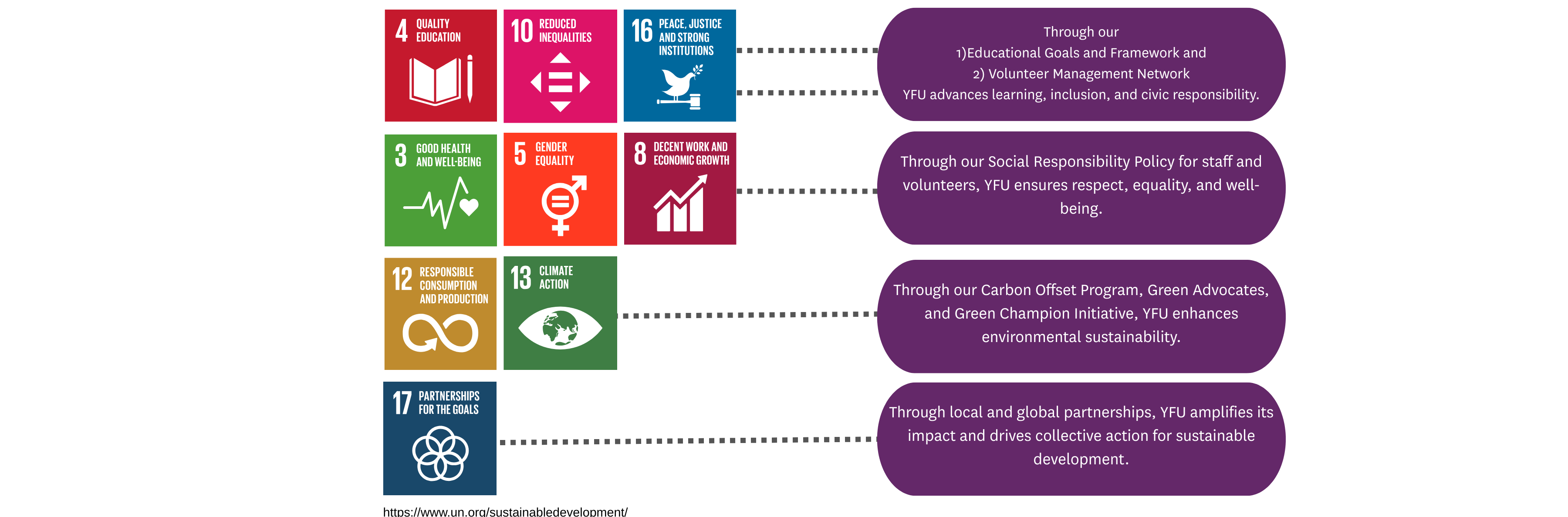 With 45+ member organizations across six continents, YFU’s large global community turns shared values into real action. Local activities add up to a collective impact that supports the 2030 UN Agenda for Sustainable Development and advances key UN Sustainable Development Goals (UN SDGs).